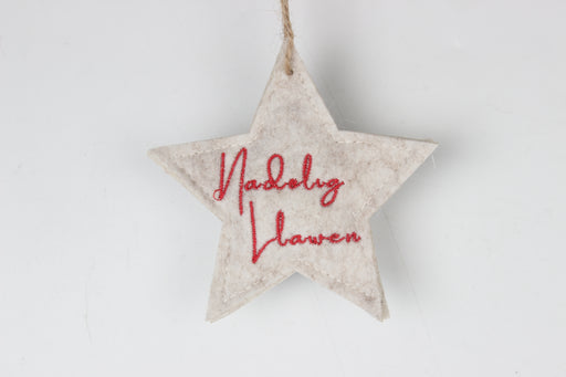 Cardiau.CymruIn stockAddurn Nadolig Llawen wedi'i wneud o ffelt. Welsh 'Nadolig Llawen' decoration. Cardiau ac addurniadau wedi'u dylunio yng Nghymru gan Cardiau.Cymru....