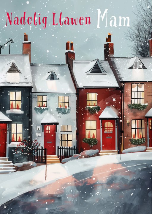 Dyluniadau a cardiau cyfoes Nadolig Llawen Mam gan gwmniau ledled Cymru.
